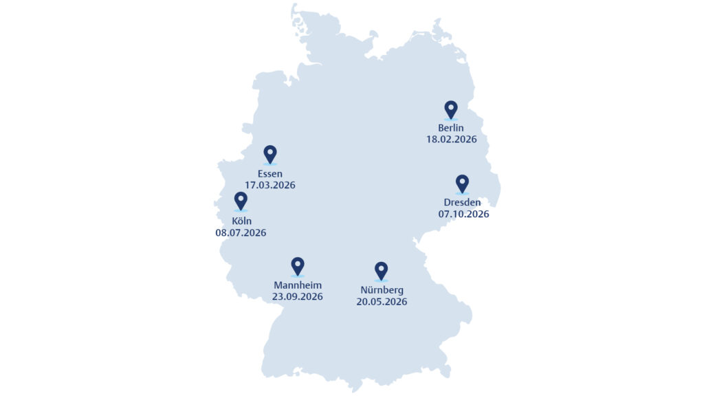 Düsseldorf, 26. November 2025 / Leipzig, 22. Oktober 2025 / Hamburg, 19. Juni 2025 / Frankfurt, 7. Mai 2025 / Hannover, 20. März 2025 / München, 20. Februar 2025 / Berlin, 15. Januar 2025